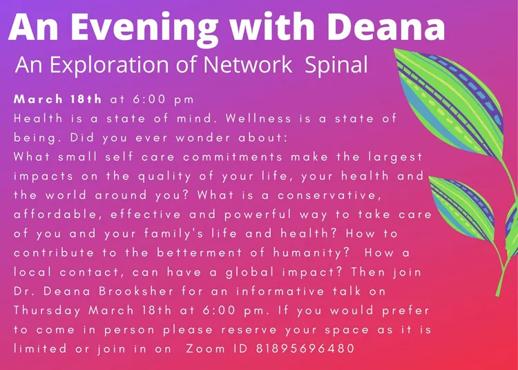 An Evening w/ Deana An Exploration of Network Spinal March 18th 6:00 pm